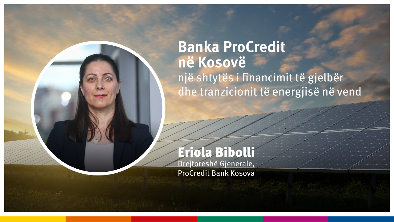 Fatkeqësisht, është jashtëzakonisht e dukshme që tranzicioni energjetik sapo ka filluar të marrë formë në Kosovë. Si do të lëvizë ky tranzicion është ende e paqartë, por pavarësisht nga forma, një gjë është e qartë: do të kërkojë kapital, financim, stimuj dhe njohuri. Roli i sektorit financiar në mbështetjen e këtij tranzicioni është thelbësor për alokimin e kapitalit për projekte më të qëndrueshme. Nuk mund të kishte moment më të mirë se tani, për të treguar historinë e Bankës ProCredit si bankë lidere dhe me përvojën më të gjatë në Kosovë, në shtyrjen përpara të agjendës së qëndrueshmërisë dhe financimeve të gjelbra.