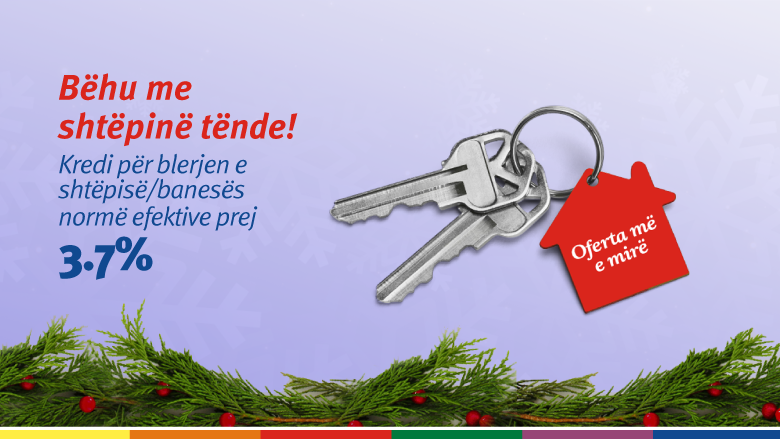 Ofertë e re për klientë privatë që planifikojnë të blejnë shtëpi/banesë apo patundshmëri me normë efektive të interesit duke filluar nga 3.70%.