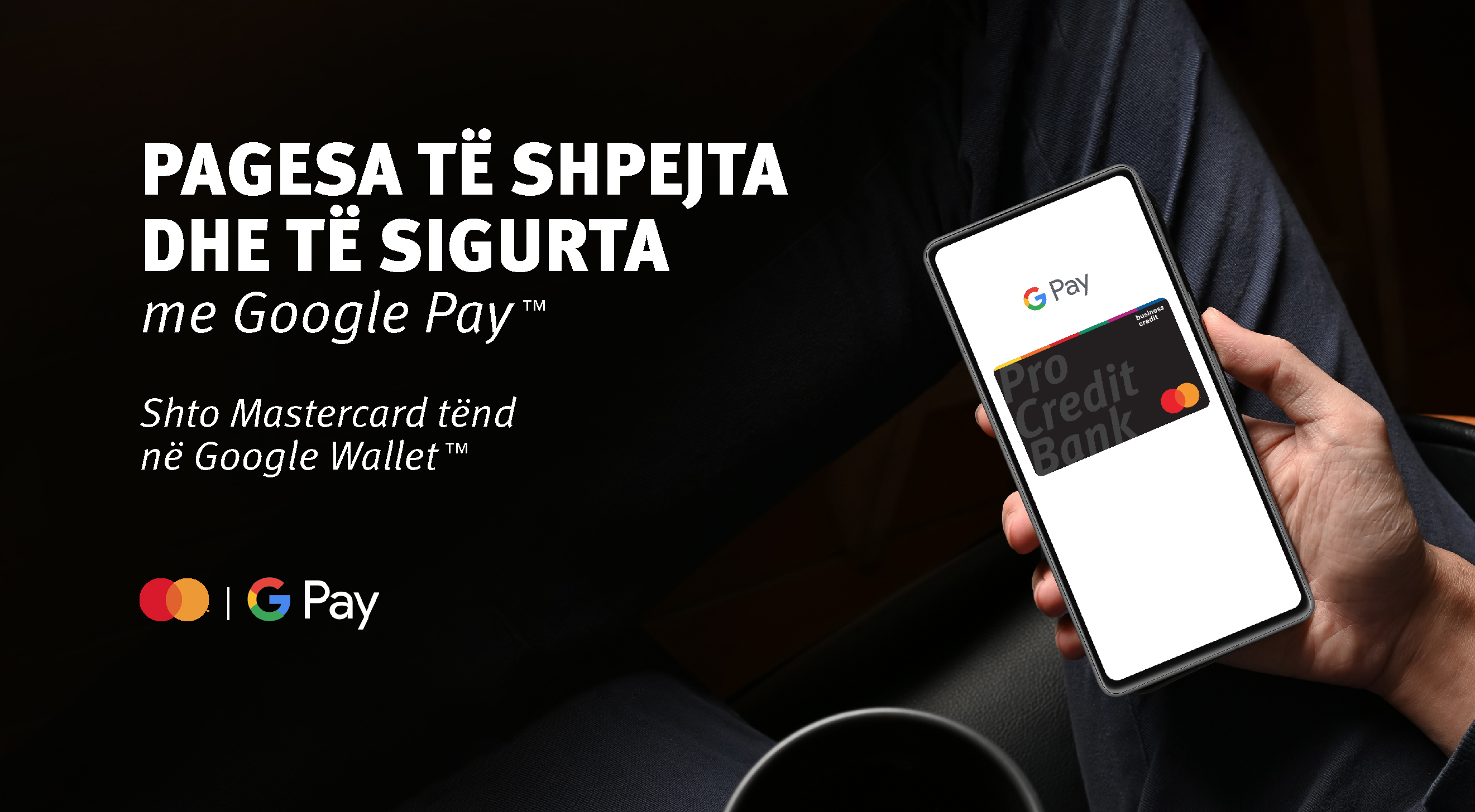 Përmes partneritetit të ProCredit Bank me Google Pay, ti mund të shtosh të gjitha kartelat e tua në një vend dhe mund të paguash sa hap e mbyll sytë, direkt nga telefoni apo ora jote e mençur!